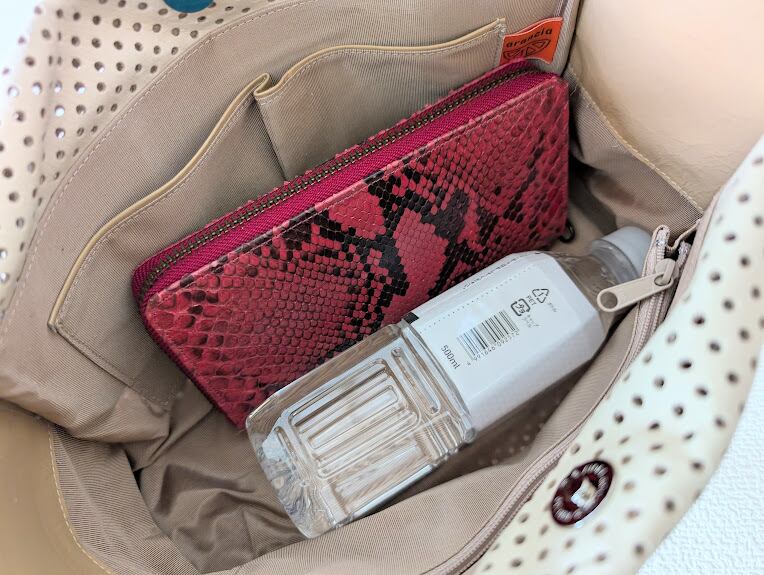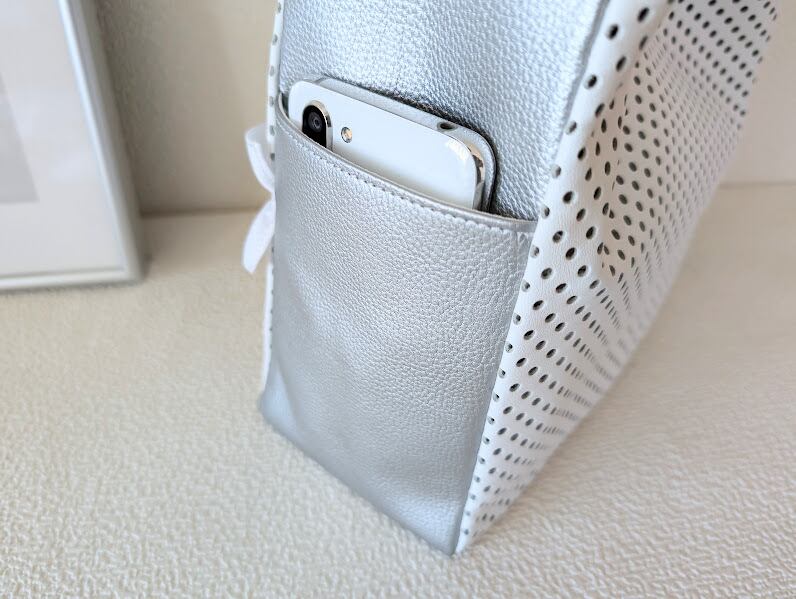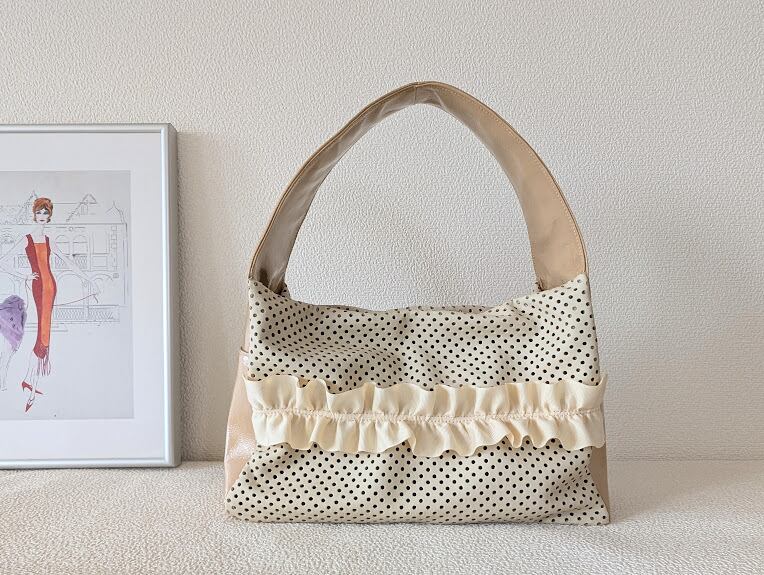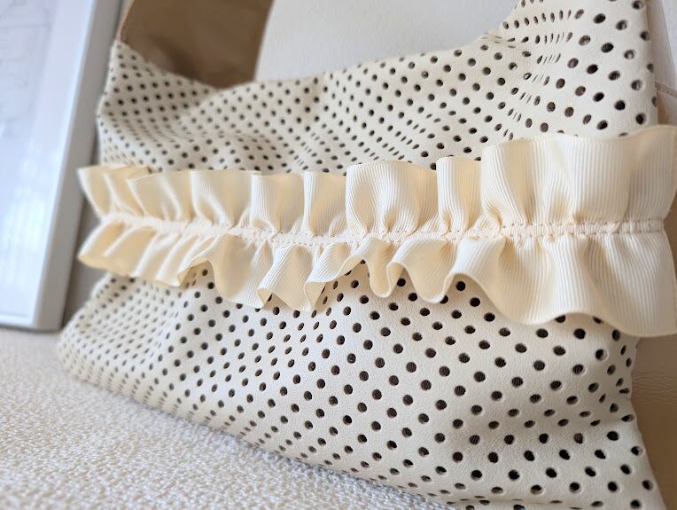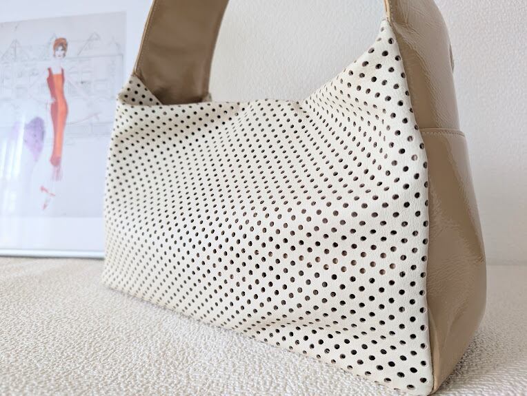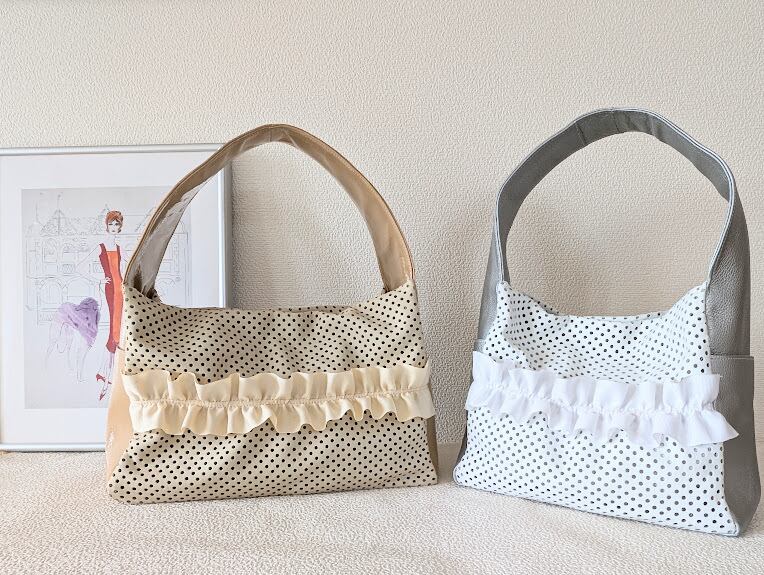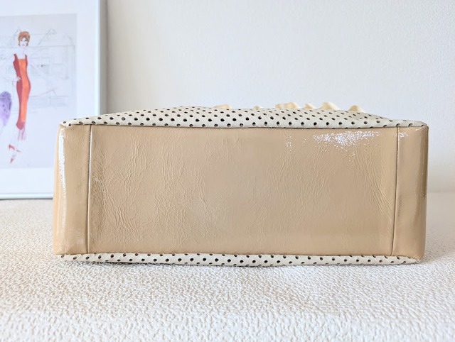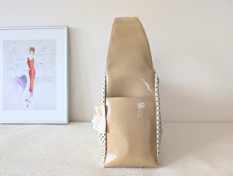 【オーダー】パンチングレザーバッグLサイズ:うすベージュ【リボンクリーム】