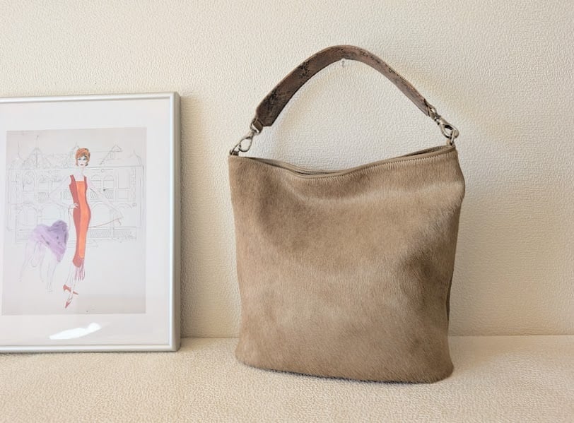 【オーダー】ハラコワンハンドルバッグベージュ【ハラコ×牛革】