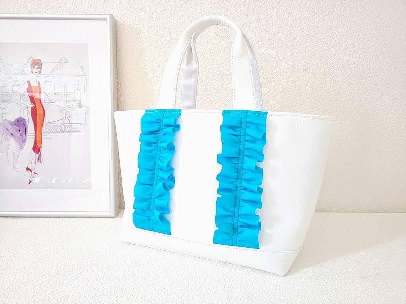 【全14色】リボントート白:S【リボンターコイズブルー】