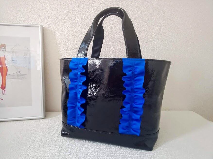 【オーダー】リボントート黒:M【リボンサファイヤブルー】