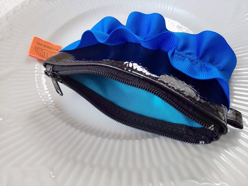 エナメル革:黒、裏生地:ターコイズブルー