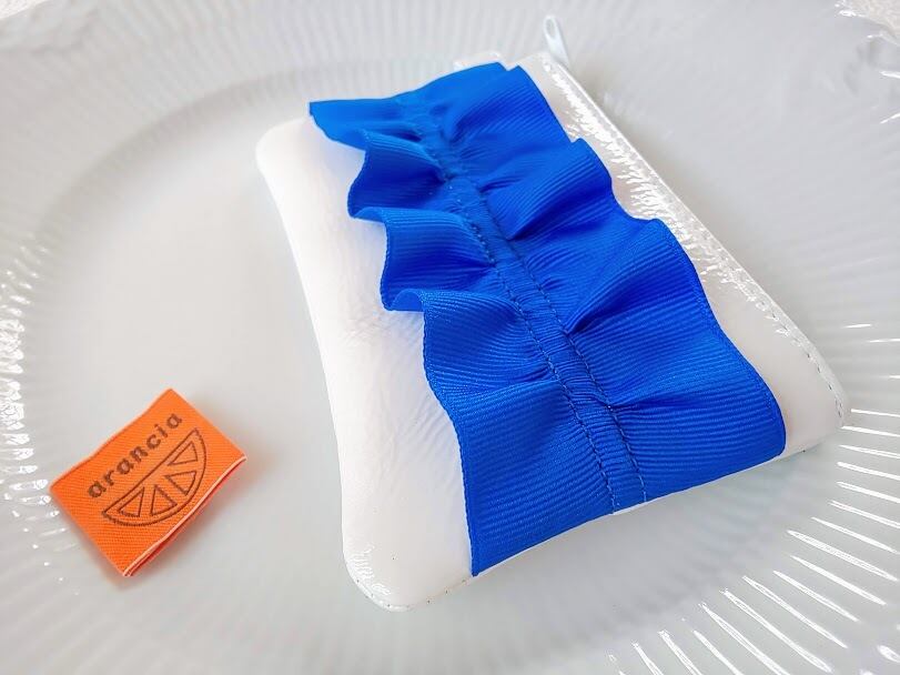 【全14色】ティッシュポーチ白【リボンサファイヤブルー】