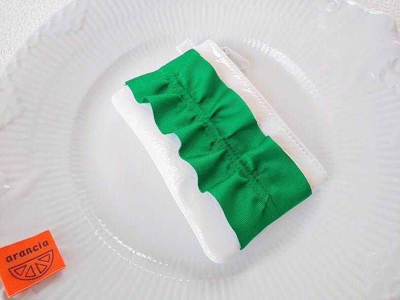 【全14色】ティッシュポーチ白【リボングリーン】