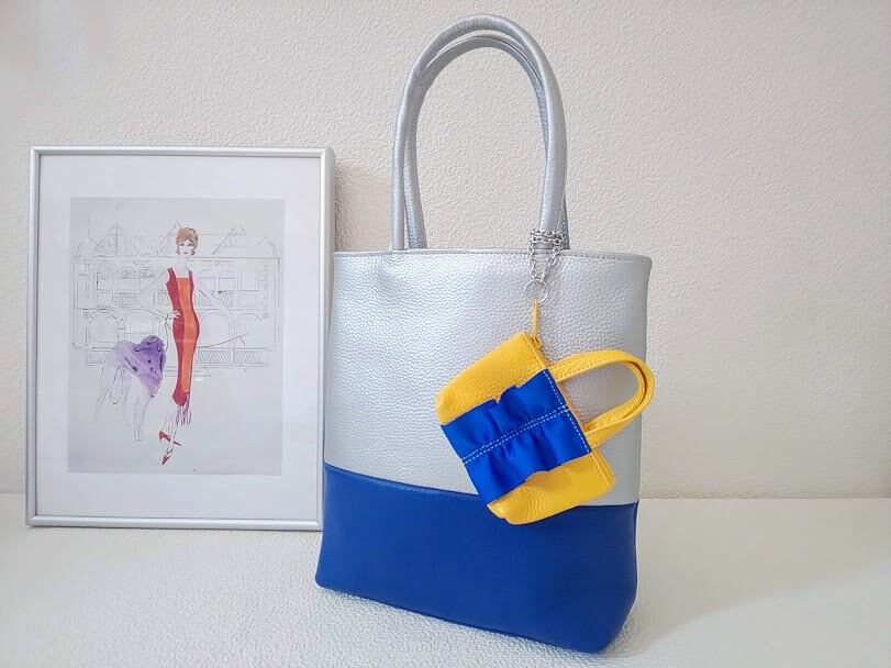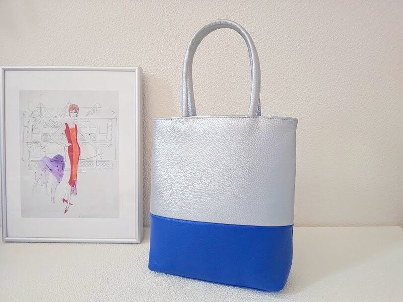 バイカラーミニトート【シルバー×ブルー】